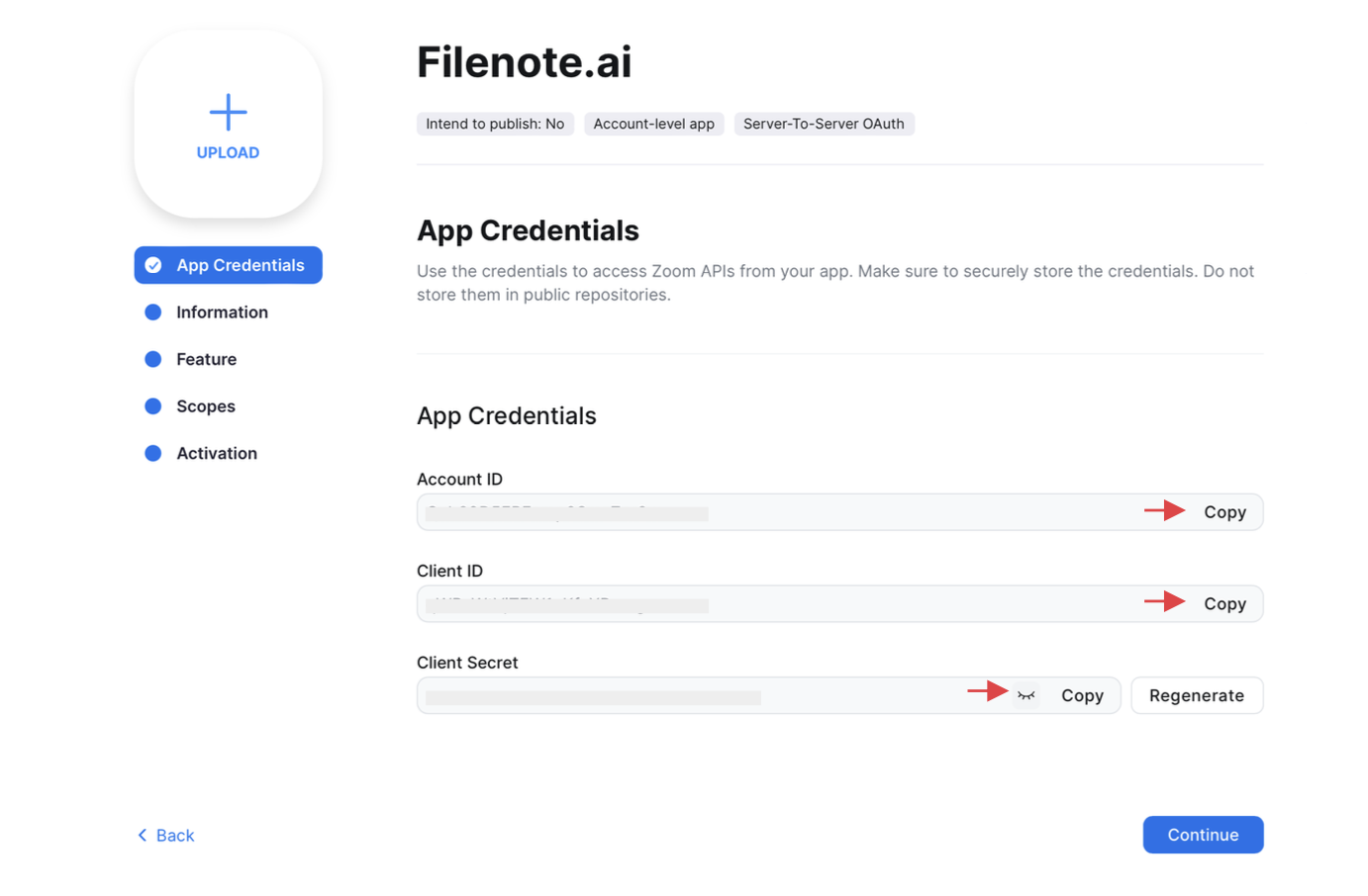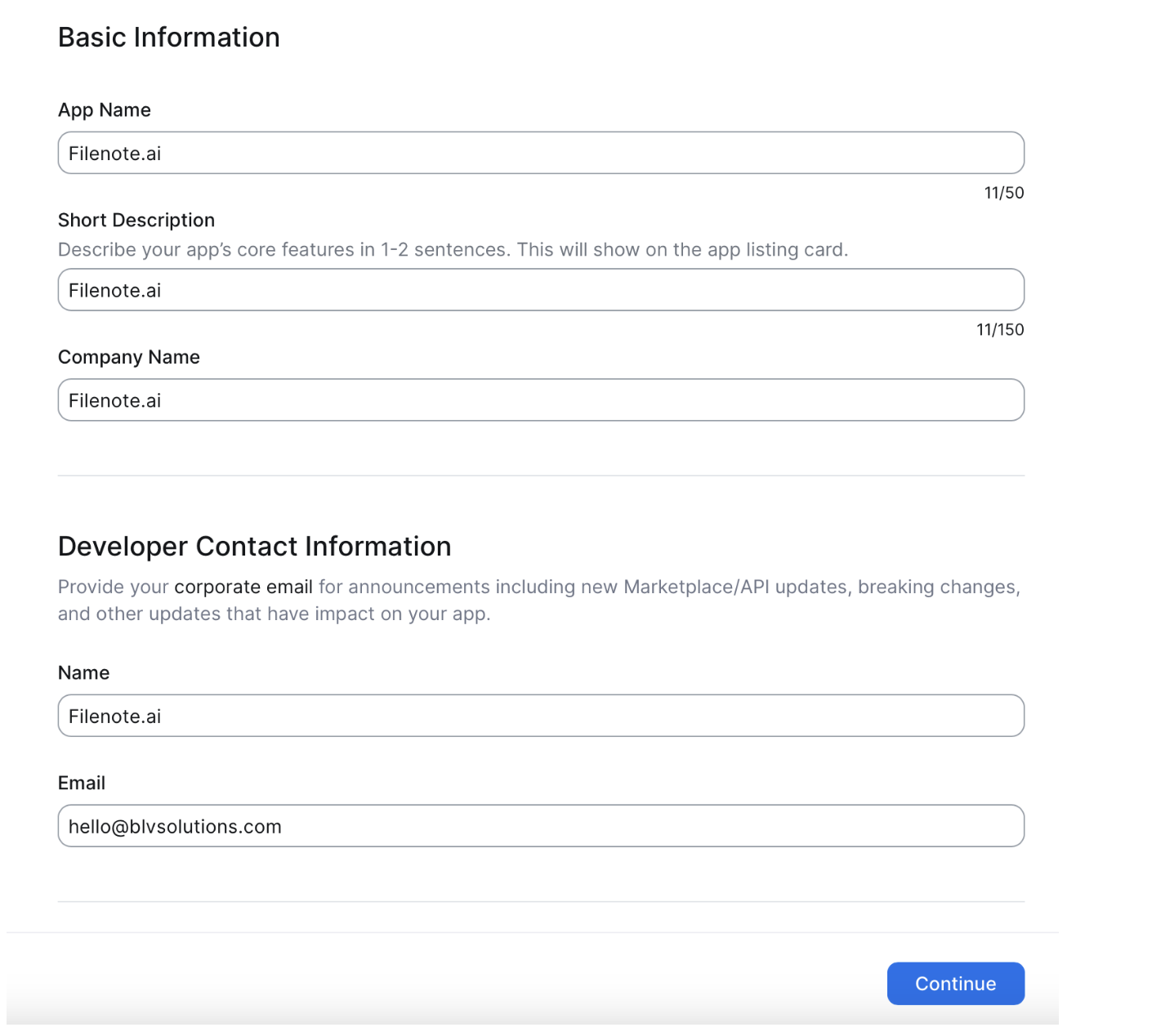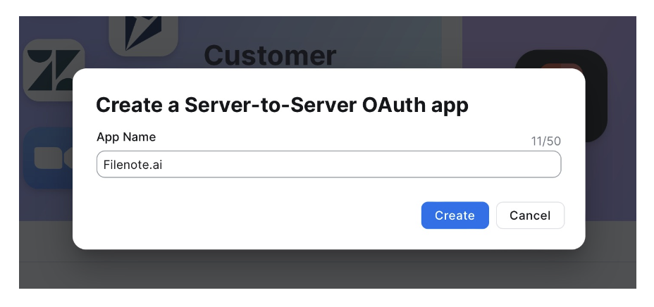 Step 4: Provide a name for the app, e.g. Filenote.ai