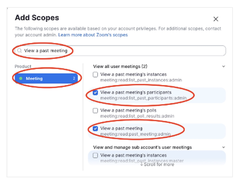 Search for “View a past meeting”, Select both of the “View a past meeting’s participants” & “View a past meeting” as per the screenshot:
