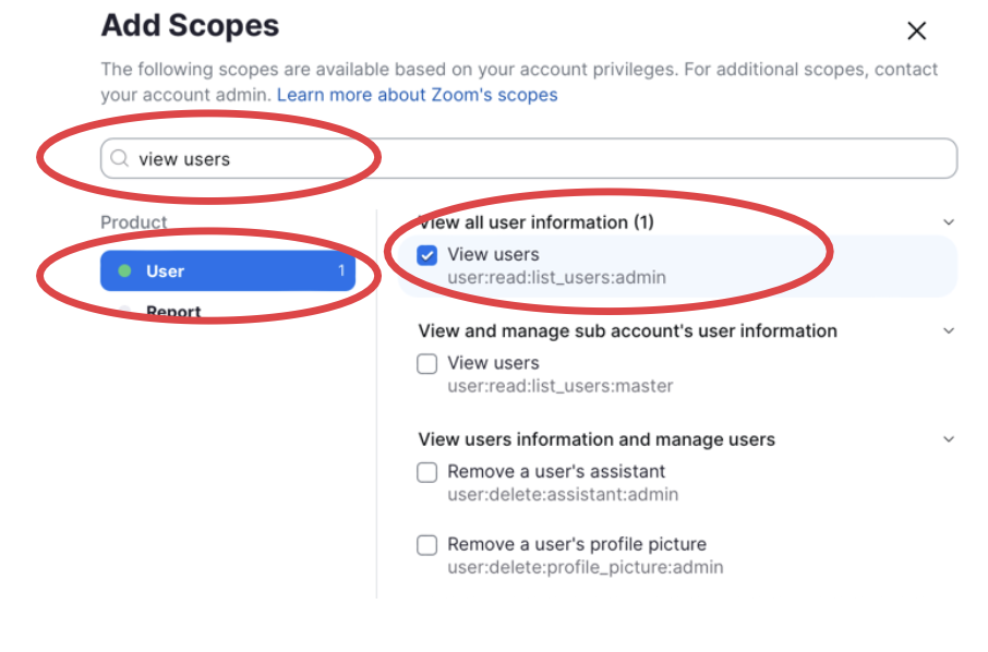 - Search for “View Users”, select “View Users” as per the screenshot: