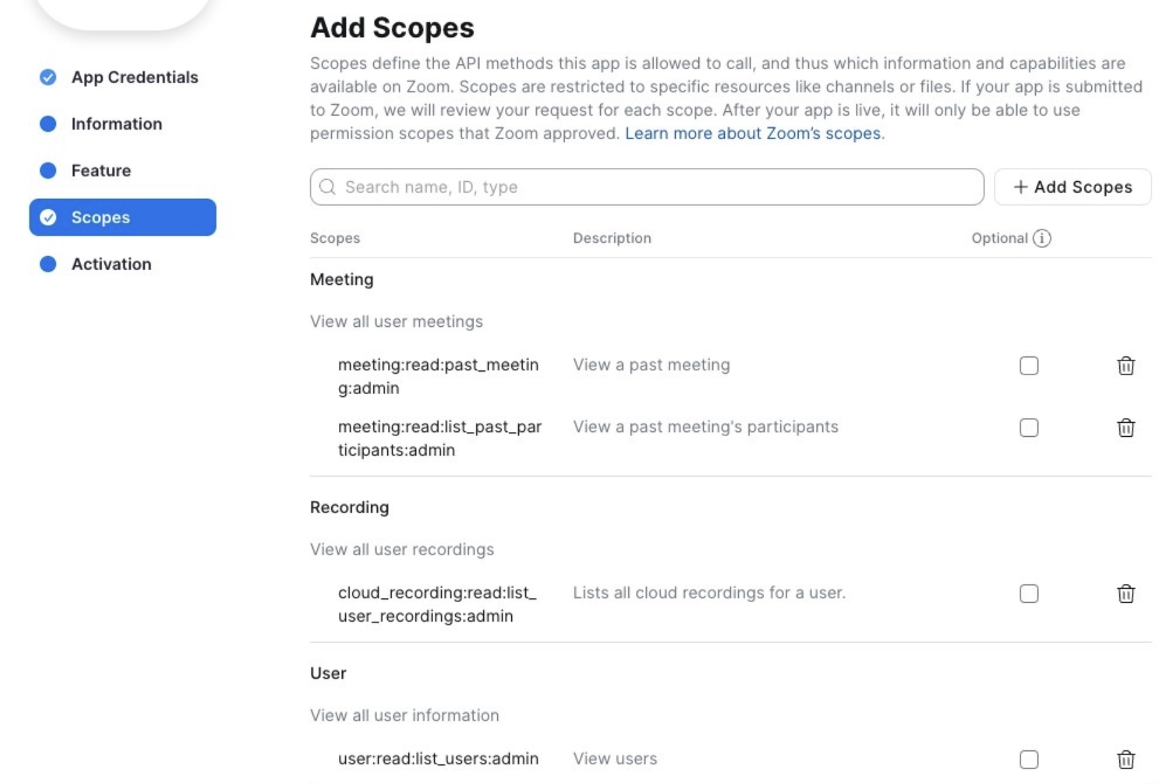 To enable this, you will need to setup a Zoom App with a secure “Server-to- Server” access. More details about this type of access can be found in the following link: Zoom Documentation