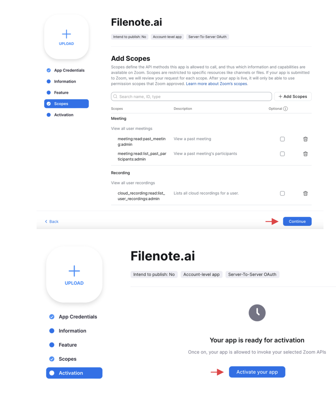 Step 9: Click “Continue” and “Activate your app” at the next screen:
