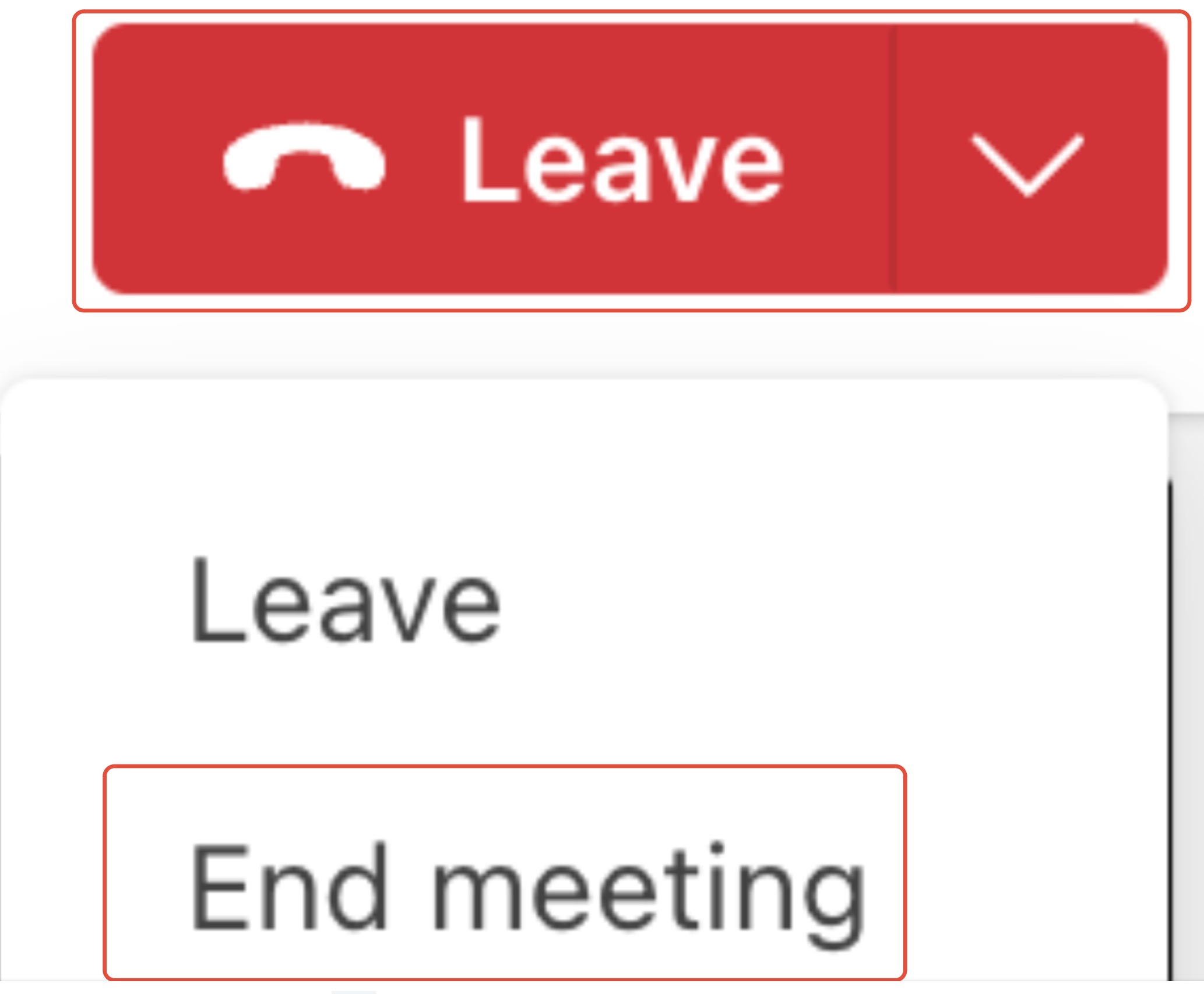Exit & Close: Click the dropdown next to Leave and select End meeting. This ensures the session closes for everyone and the file begins processing immediately.