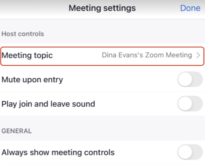 - Go to 'More', select 'Meeting Settings', Click 'Meeting topic' and enter the correct key words