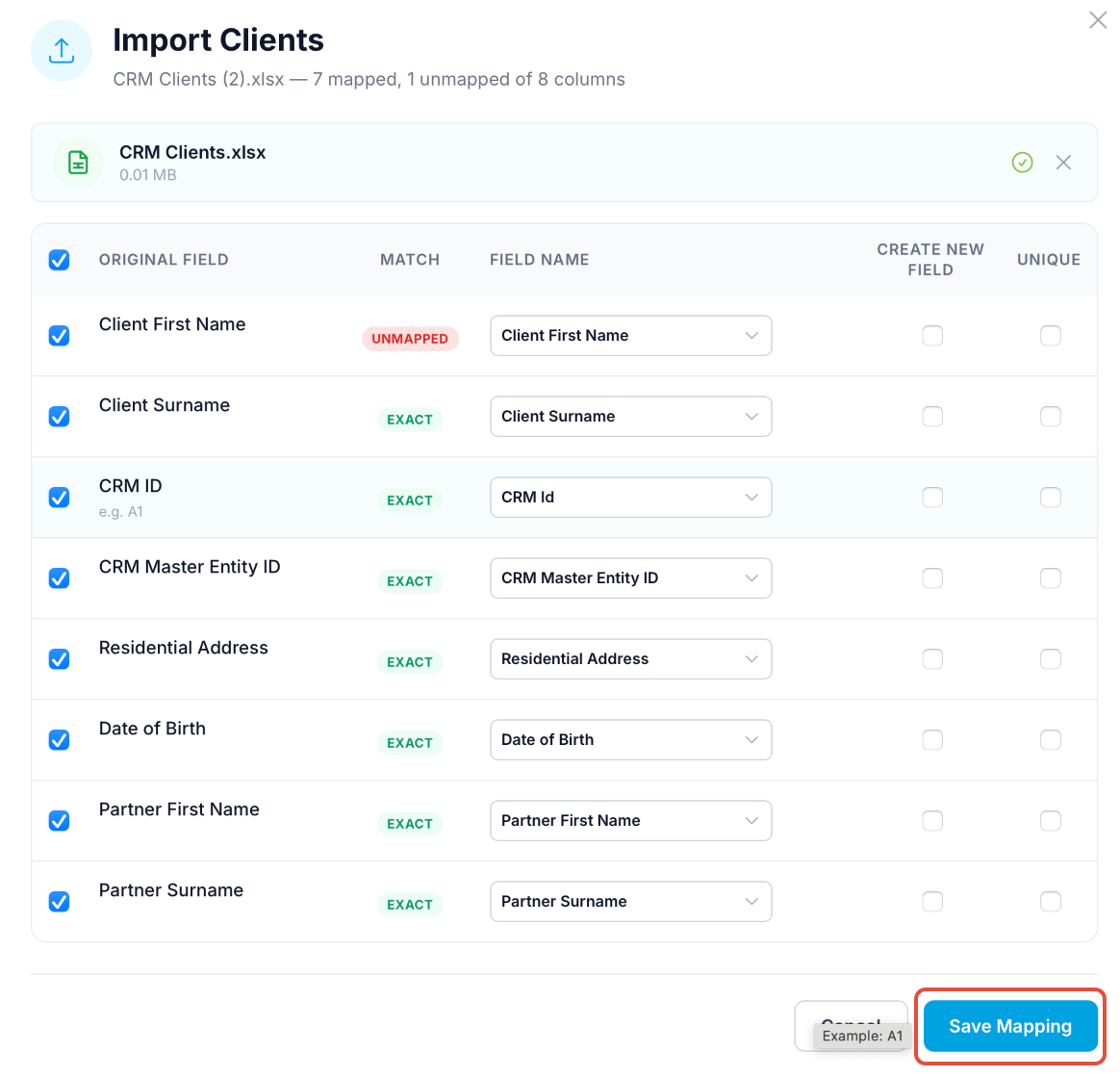 Finalize: Click Save Mapping to complete the import.