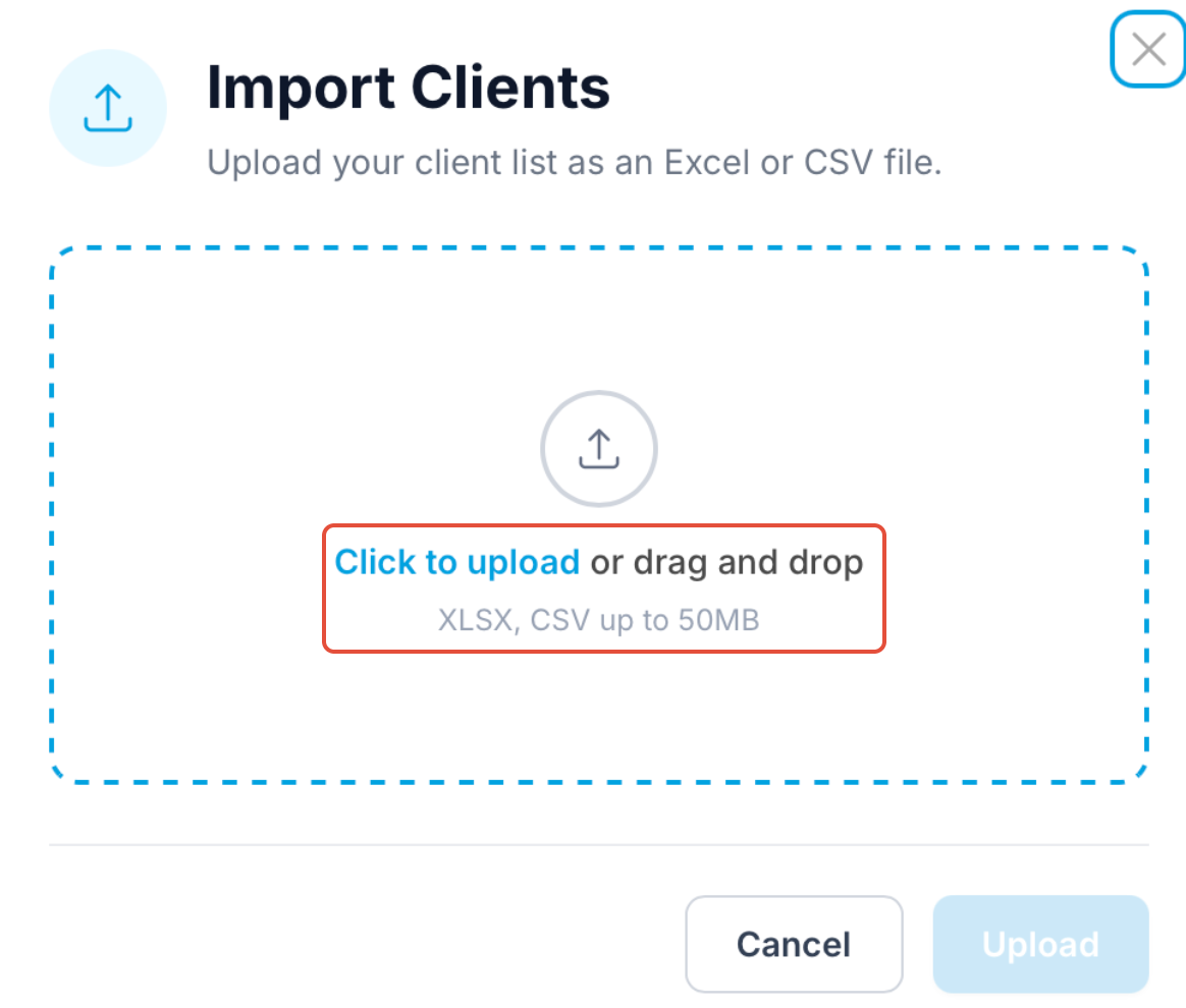 Initiate Import: Select the Import Clients button at the top of the page.